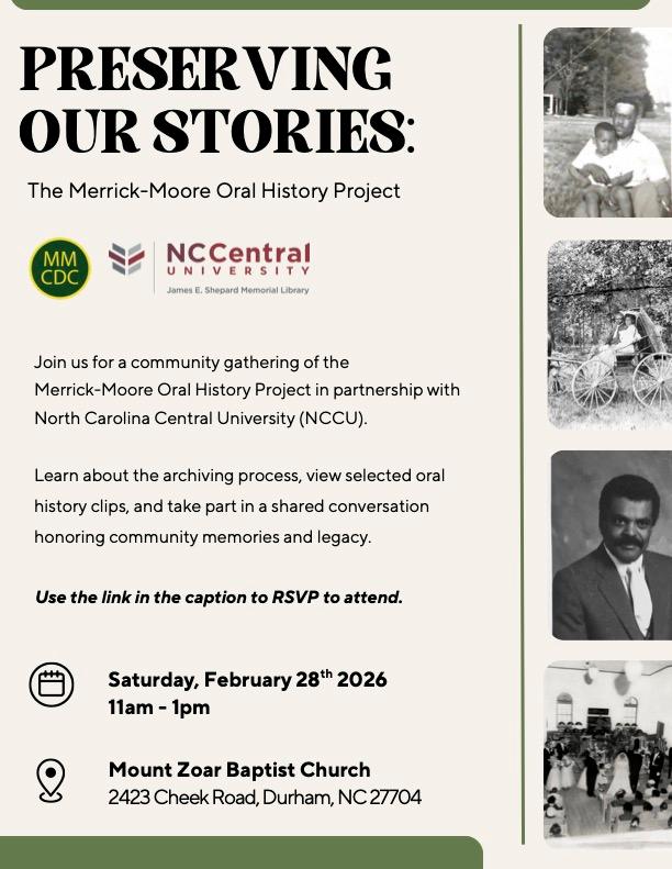 We’re honored to share that the Merrick-Moore Community has been named the first Black Legacy Community by the City of Durham’s Heritage Communities project! This milestone celebrates the neighborhood’s rich history and lasting contributions to our city.